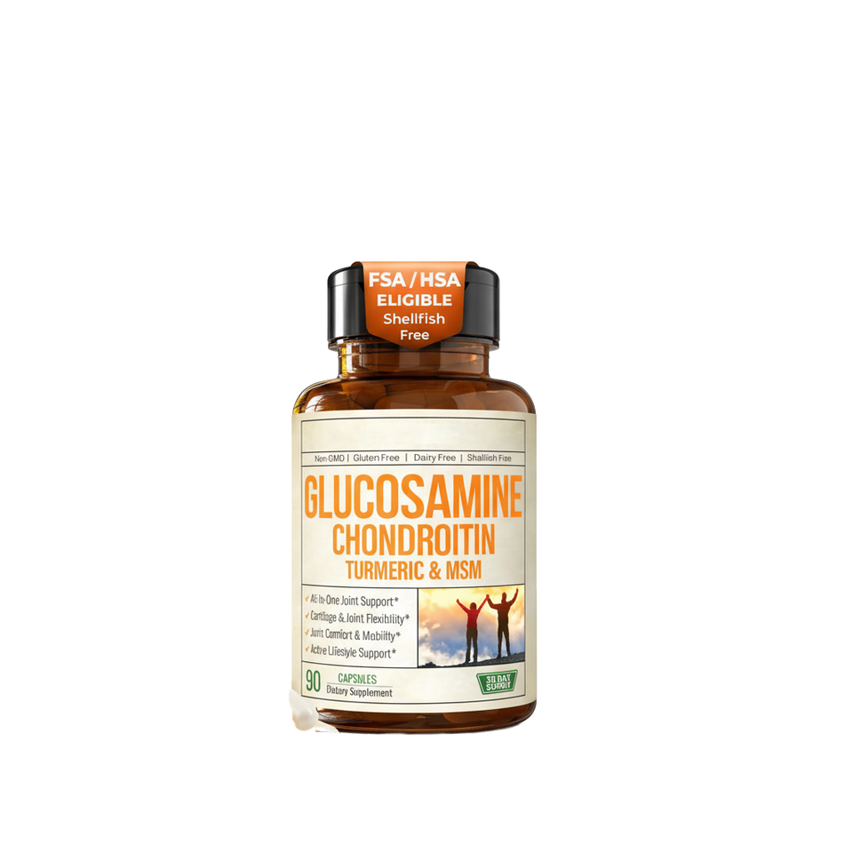 Suplemento para Articulaciones y Huesos Sin Mariscos, Glucosamina, Condroitina, Cúrcuma, MSM en Cápsulas (90 Cápsulas/botella)