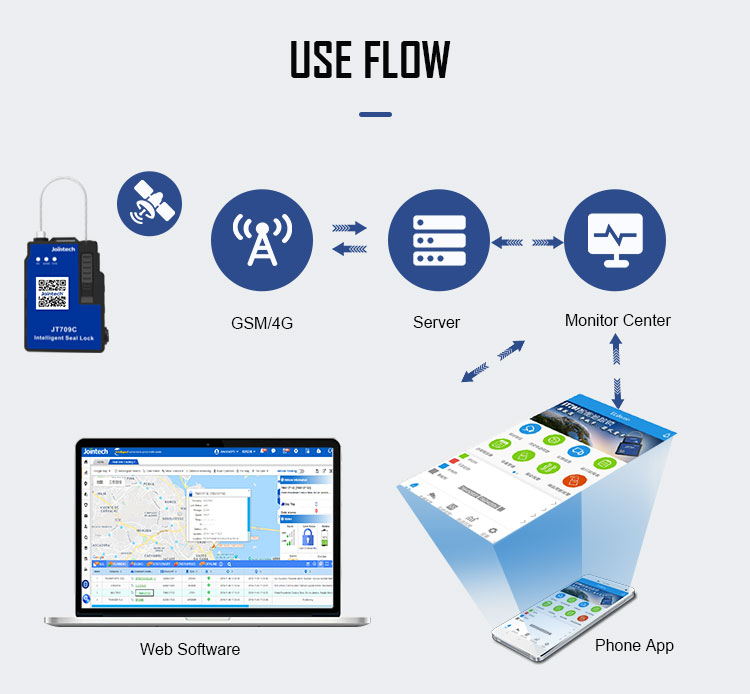 Control Remoto, Sistema de navegación de modo dual, Diseño Antirrobo, A prueba de polvo y agua: IP67, Unidad principal reutilizable, Aviso de Apertura, Seguimiento de posición en tiempo real, Módulo de comunicación integrado 2G/3G/4G, Estadísticas del número de focas., Alarma de evento anómaloFunción