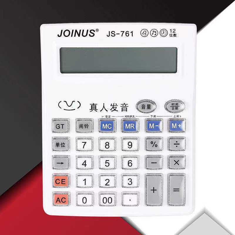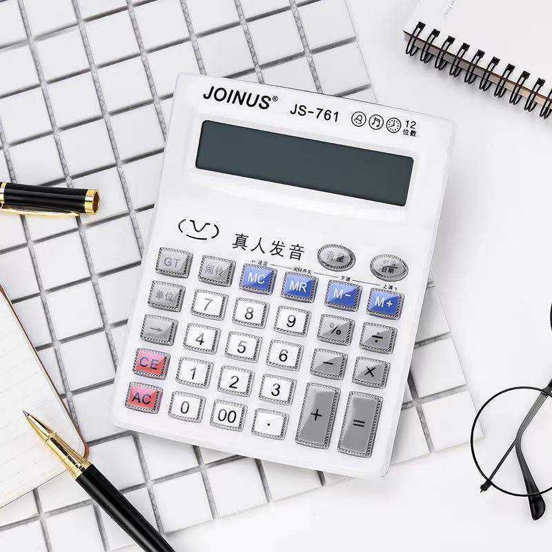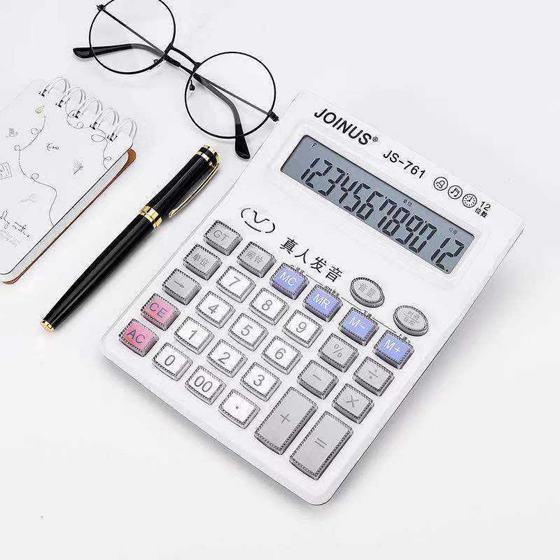 Calculadora de Oficina Joinus Js-761 de 12 Dígitos con Botones de Voz Real, Doble Fuente de Alimentación, Blanca