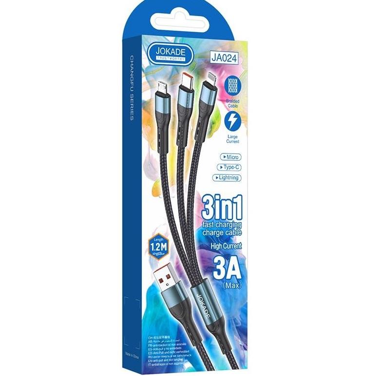 Cable de Carga 3 en 1 Jokade, Micro USB Tipo C, 1.2m, Carga Rápida, Múltiples Dispositivos