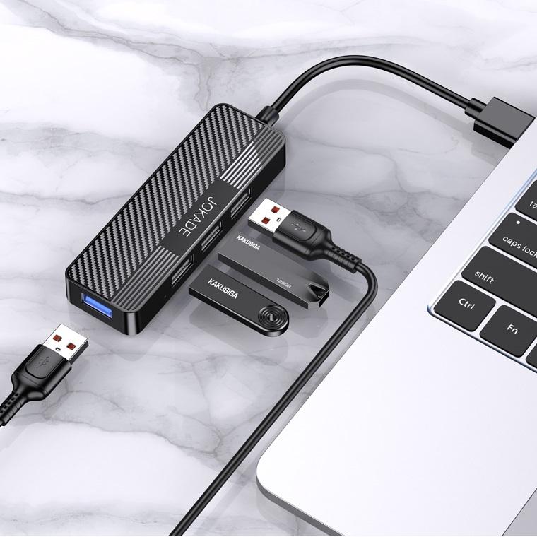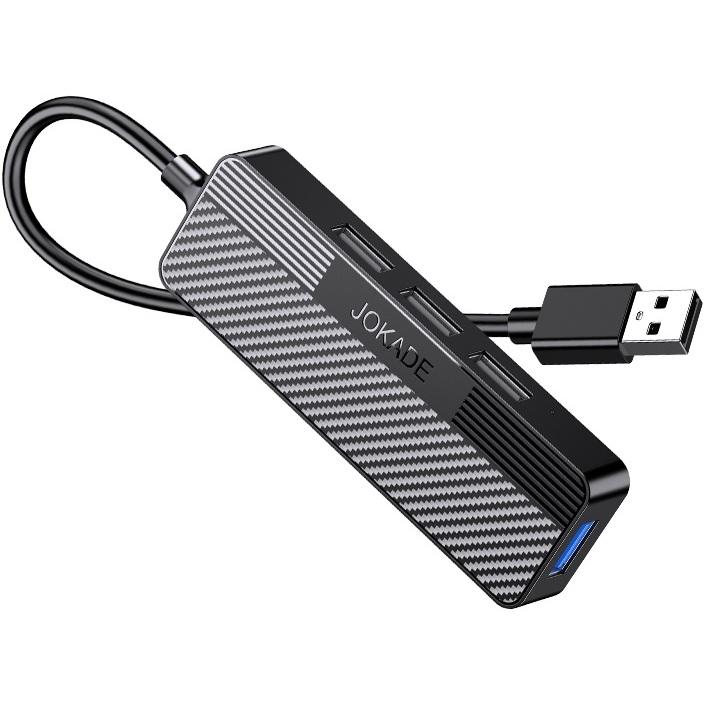 Adaptador Hub USB 4 en 1 Jokade, 1 Puerto USB 3.0 y 3 Puertos USB 2.0, Negro, JC009 K