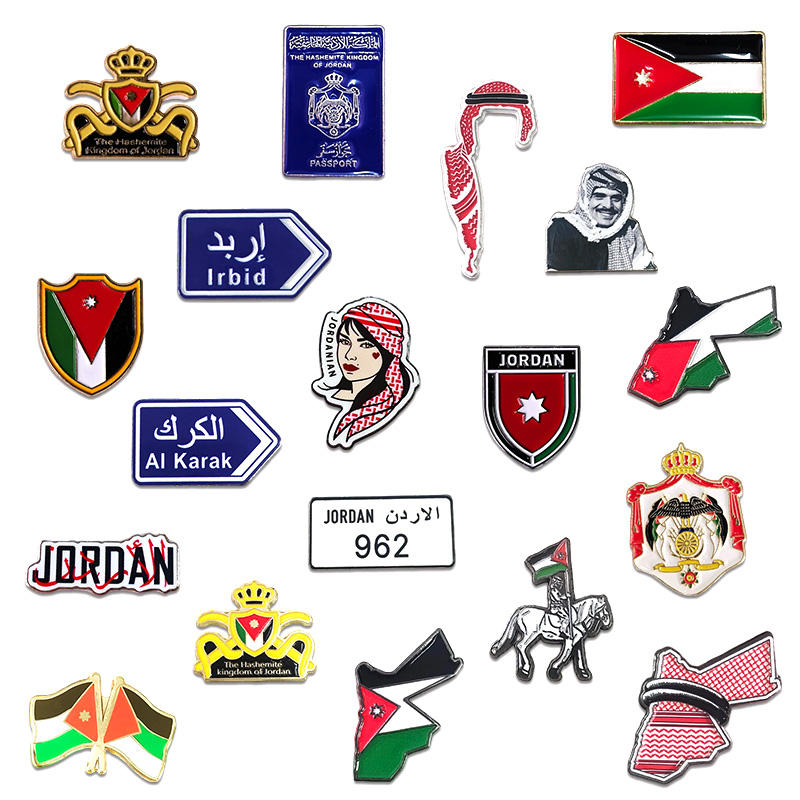 Insignias con el Emblema de Jordania, Pines de Metal Esmaltados Personalizados, Recuerdos de Aleación de Oriente Medio, Desierto, Golfo, Viajes y Turismo