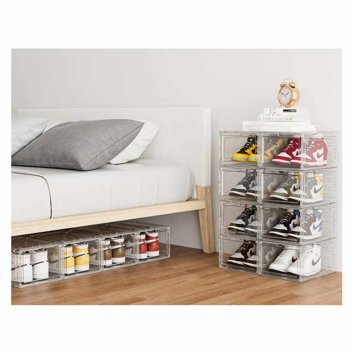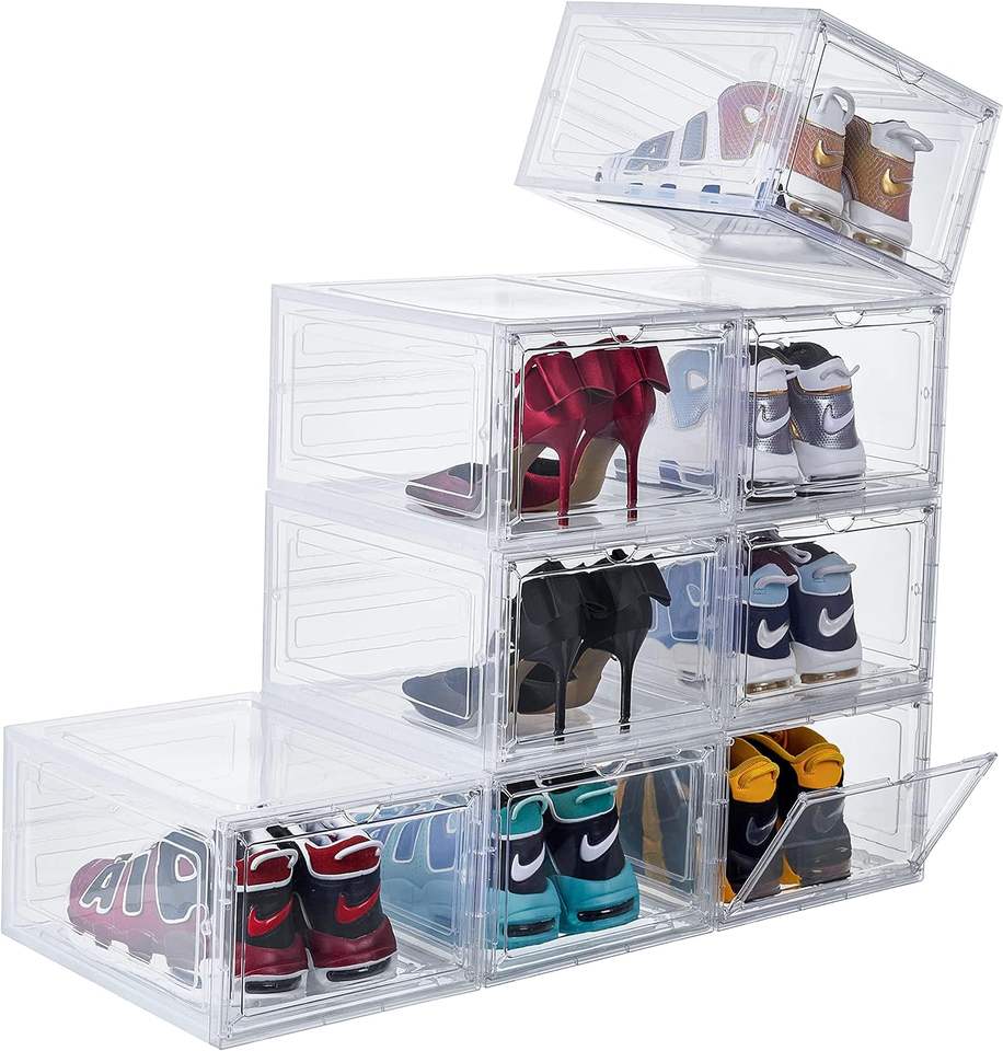 Jordan Shoe Box Storage Caja de zapatos rectangular de acrílico transparente con asa Inyección de plástico Plegable y diseño que ahorra espacio
