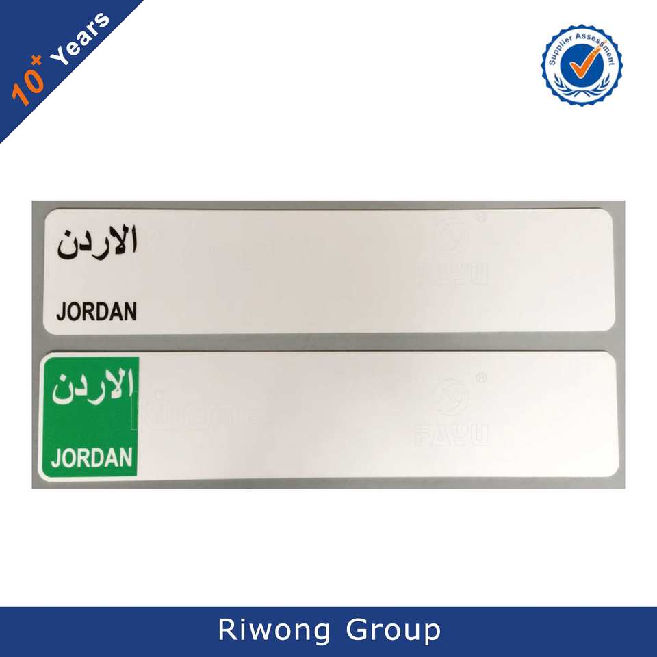 Jordan mercado licencia de vehículo con placa de película reflectante