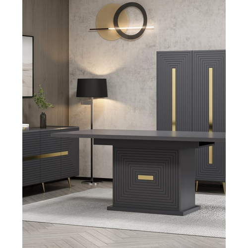 Conjunto de muebles de comedor Jose 3 – Membrana antracita (Aparador+Mesa+Vitrina)