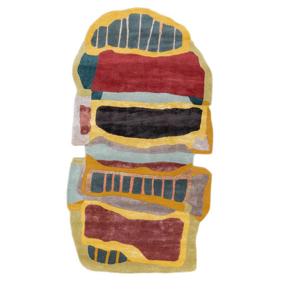 Alfombra Joy de Lana y Viscosa Hecha a Mano en Rojo y Naranja Tra-15217 para Uso Doméstico con Patrón Abstracto