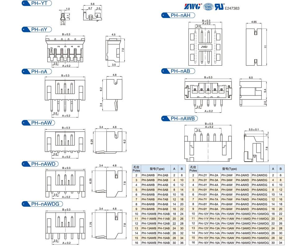 Conector de terminal de crimpado de cable a placa JST de 2.0mm PH de 17 pines, conector macho tipo aguja para empalme