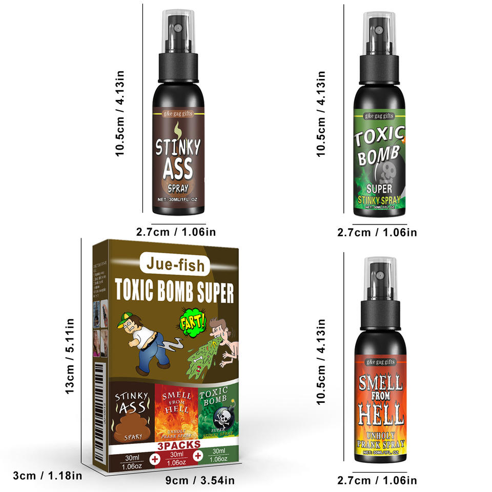 Jue-Fish Juguete para toda la persona Parodia Stinky Fart Spray con caca Hell Bomb Olor Fiesta Novedades Entretenimiento