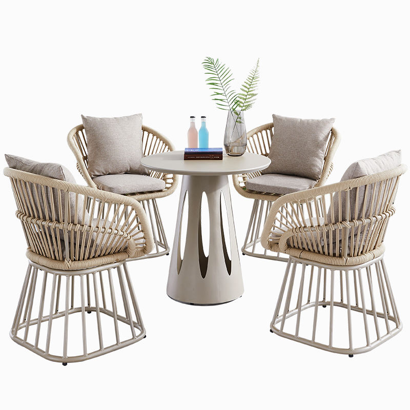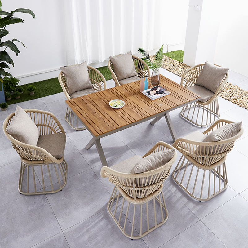 Juego de mesa de comedor de aluminio moderno Juecheng, mesa de comedor de café y silla de diseño para restaurante, silla de jardín para Patio