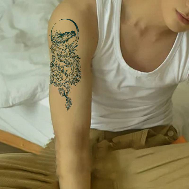 Serie de jugo medio brazo decoración corporal temporal tatuaje pegatina hombres mujeres semipermanente impermeable diseño de dragón
