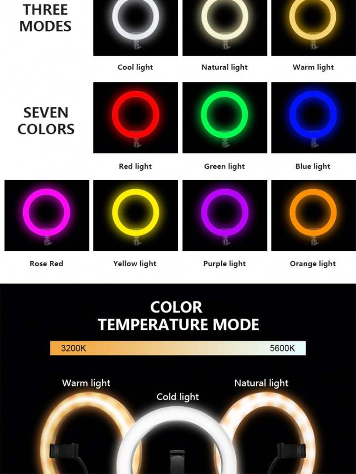 Detalles del embalaje:Iluminación de fotografía, anillo de luz LED para Selfie de 33CM con soporte de trípode, cámara regulable, anillo de teléfono, lámpara ringlig para Youtube tiktok