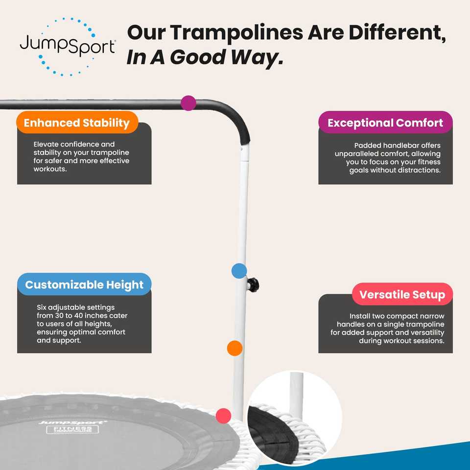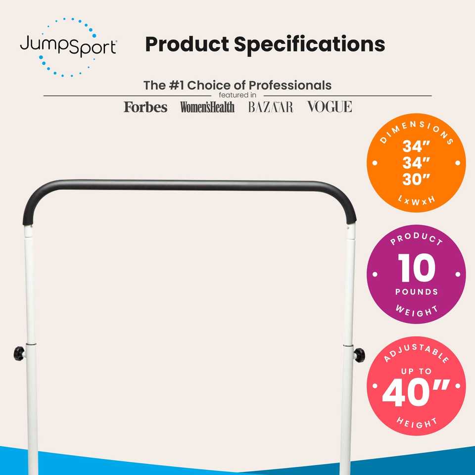Barra de Ejercicio de Acero Blanca de 39 Pulgadas JumpSport para Trampolines de Fitness con Arco para Piernas