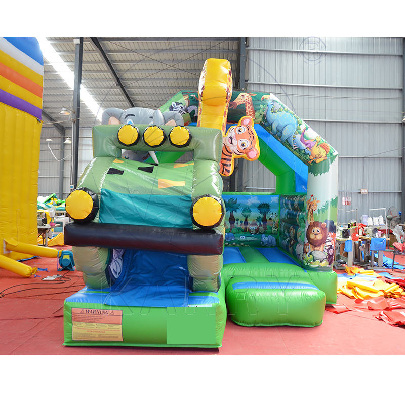 Castillo Inflable con Tobogán para Niños, Diseño de Animales de la Selva, para Exteriores