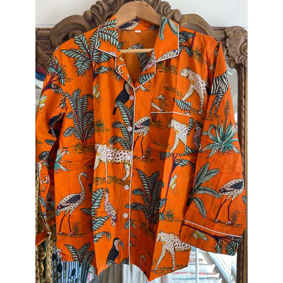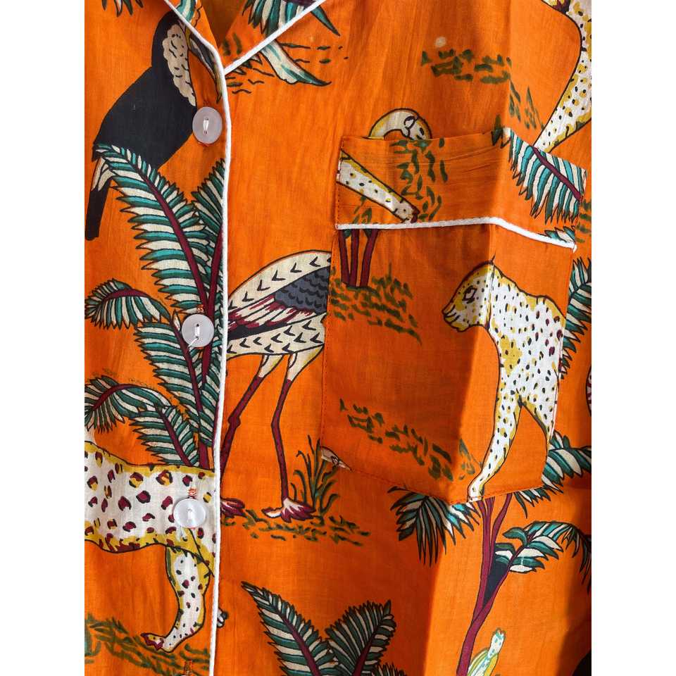 Conjunto de Pijama con Estampado Floral de Jungla, Talla Única, Transpirable, Cintura Elástica con Botones y Cordón Ajustable, para Familias y Damas de Honor, Color Naranja