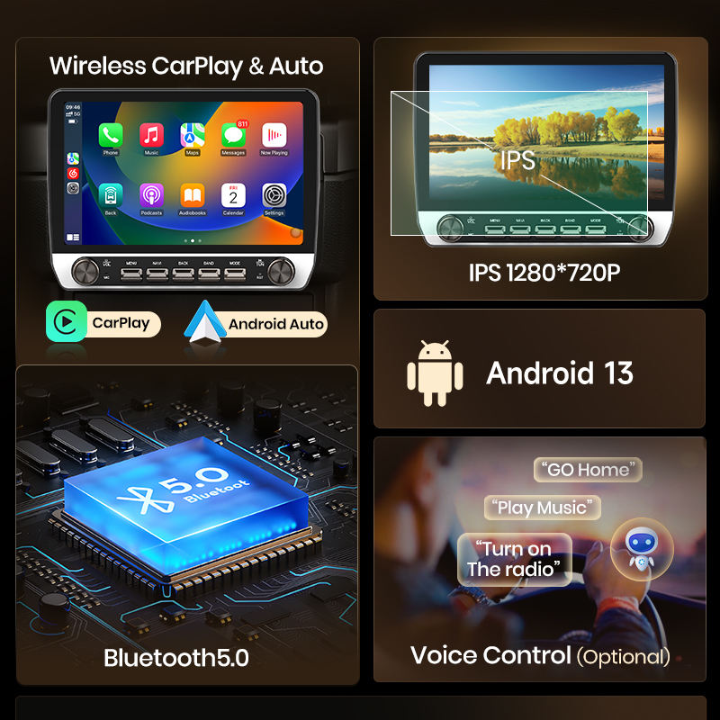 CarPlay, Enlace espejo, Android auto, Compatible con Bluetooth, Construir-En DSP, MP3/MP4, Pantalla táctil, Sintonizador Radio, Control remoto, Amplificador, Cámara de copia de seguridad, Guía de voz, Control del Volante, Pantalla dividida, Distancia de advertencia, Invertir la ayuda, En directo/aparcamiento, MultiMedia apoya, Velocidad de alerta, Construir-en el micrófono, Adas, La voz de interacción, OtrosFunción