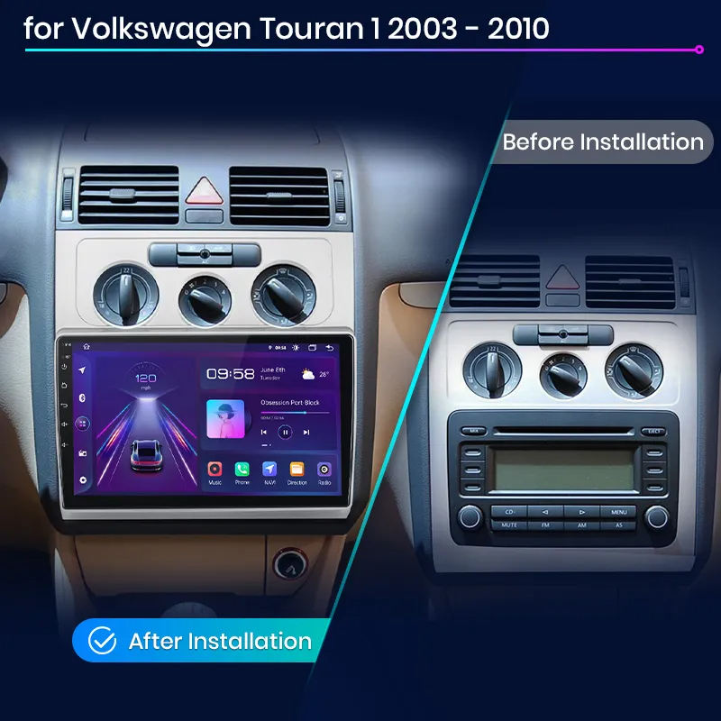 Junsun-Radio de coche Carplay con Android para Volkswagen VW Touran 1 2003-2010, reproductor de DVD para coche, navegación ESTÉREO