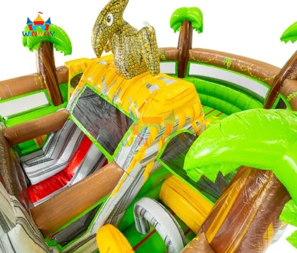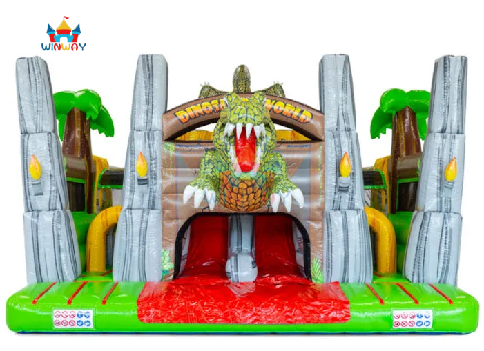 Circuito de Obstáculos Inflable de Dinosaurios Jurásicos con Tobogán - Casa de Brinco Comercial para Fiestas Infantiles para Adolescentes, Juego al Aire Libre