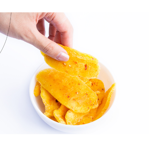 Simplemente suave y masticable. El color amarillo claro del mango combinado con la sal y el Chile se mezclan