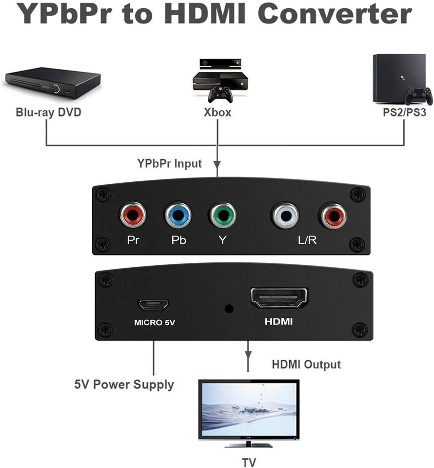 Justlink 5 RCA componente YPbPr a HDMI convertidor PbPr componente a HDMI convertidor estéreo Audio Video L/R 5RCA RGB adaptador 1080P
