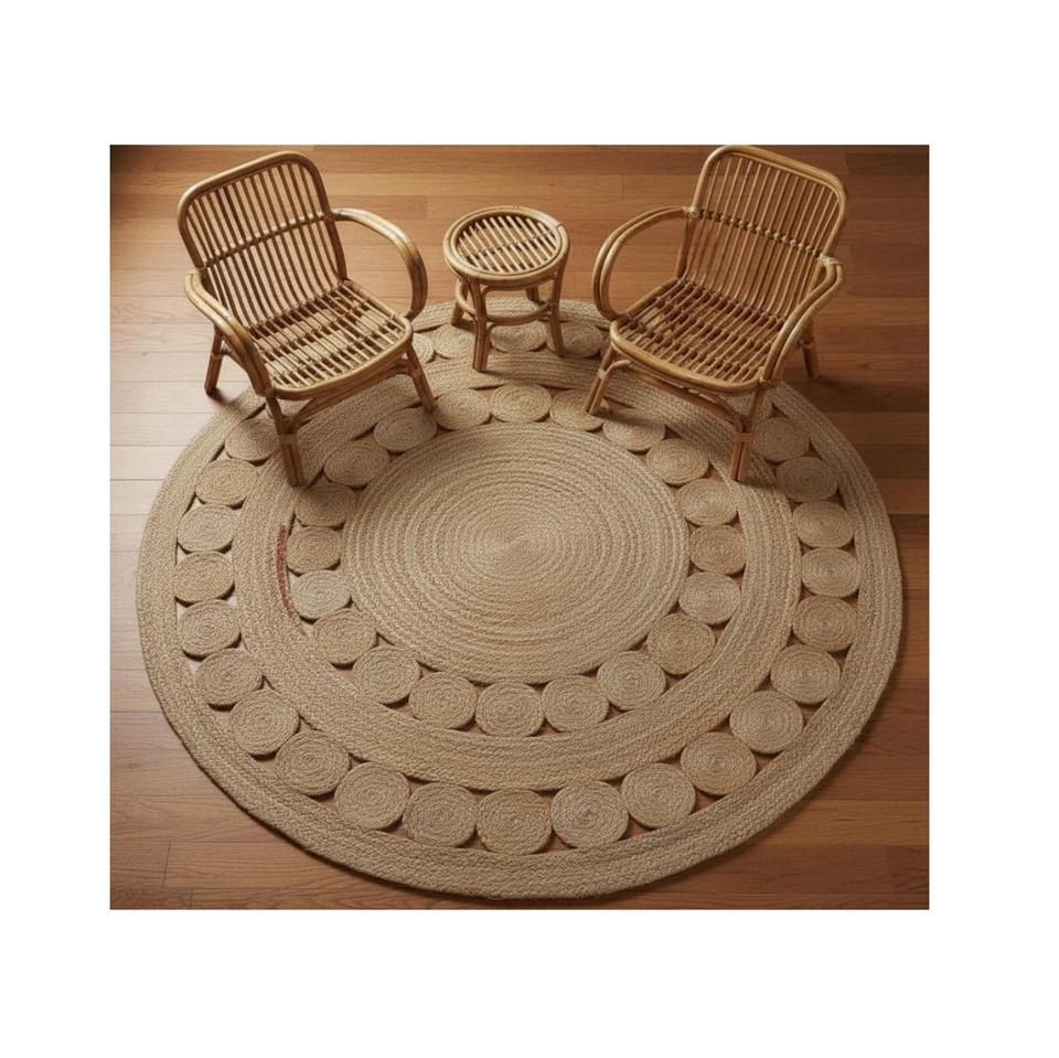 Alfombra de Yute, Alfombras de Diseño para Sala de Estar, Alfombras Redondas de Yute Lavables Modernas, Decoración para Sala de Estar, Alfombra de Yute