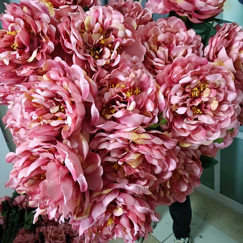 Venta al por mayor de flores artificiales, simulación de hojas y flores artificiales, peonías de seda preservadas, peonía rosa de un solo tallo