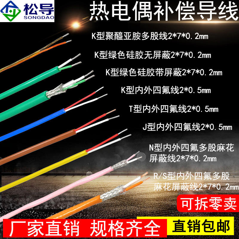 Cable de detección de temperatura azul tipo K, cable compensador tipo J, cable de detección de temperatura de termopar de teflón tipo T, PTFE