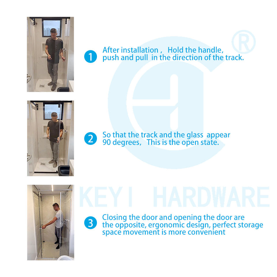 Juego de Ruedas Colgantes para Puerta de Ducha de Acero Inoxidable Moderno de Alta Calidad K011, Mampara de Baño Giratoria sin Marco para Hoteles