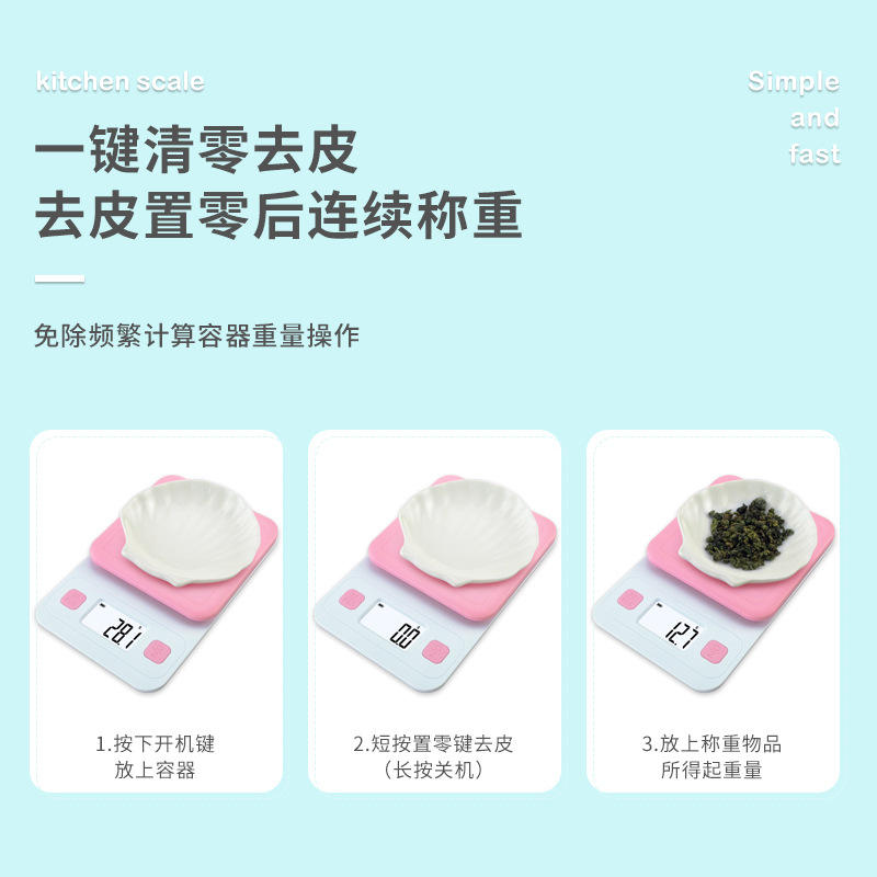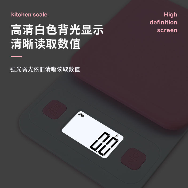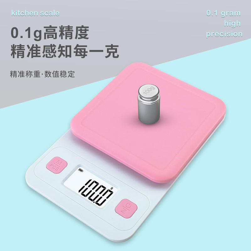 Báscula de cocina digital K2, báscula electrónica portátil de plástico de 0,1g-3kg para hornear, cocinar y pesar en gramos, onzas y mililitros