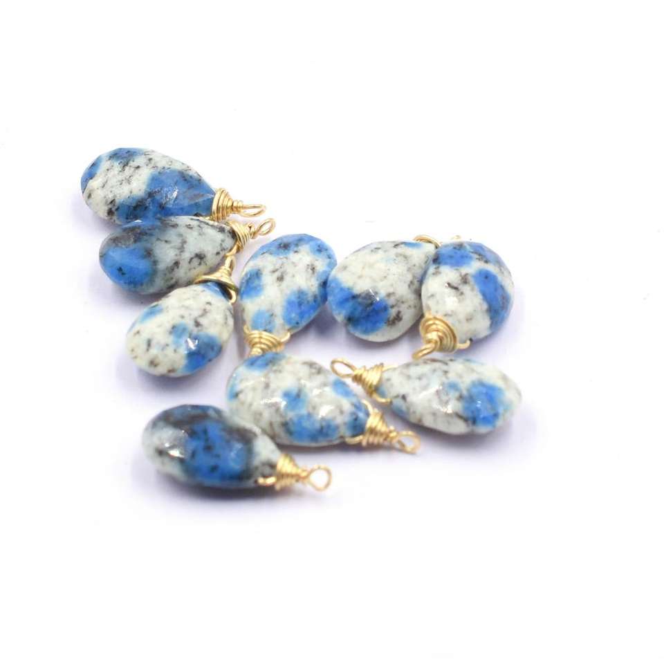 Colgante de Plata de Ley con Bisel en Forma de Pera de Jaspe K2, 17-19 mm, Chapado en Oro de 14K