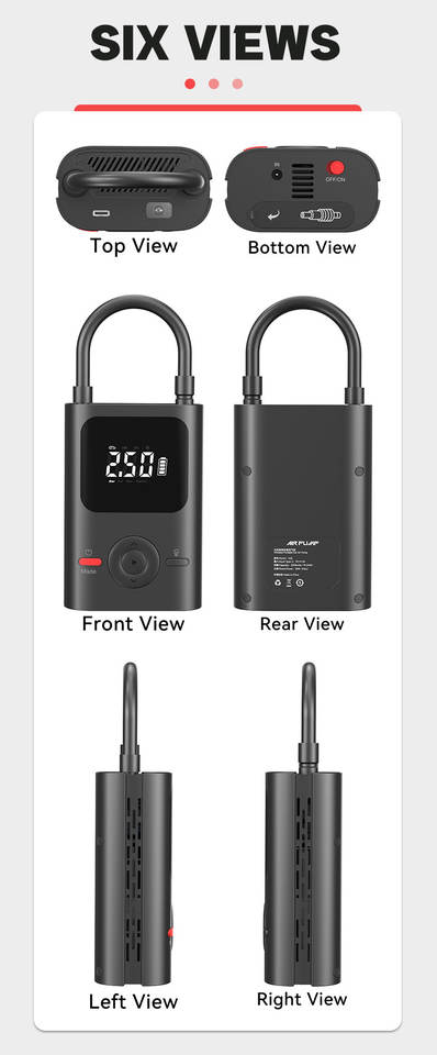 Luz de emergencia, Indicador de potencia, Portátil, Apagado automático, Inflado rápido