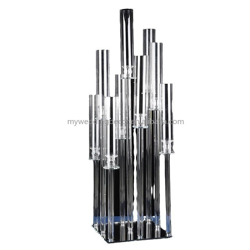 Candelabro Moderno de Cristal Transparente de 5 Brazos K62 de Alta Calidad para Bodas con Cubierta de Tubo, Centro de Mesa, Portavelas de 5 Cabezas