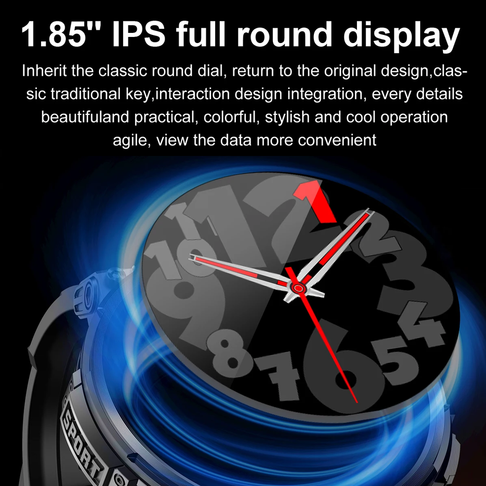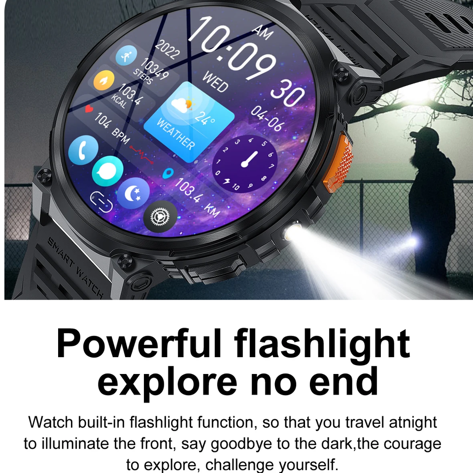 Reloj Inteligente Resistente K66 con Pantalla Grande de 1.85'', Batería de Larga Duración de 700 mAh, Llamadas por Bluetooth, Resistente al Agua IP68, Reloj Inteligente Deportivo para Exteriores con Linterna para Hombre