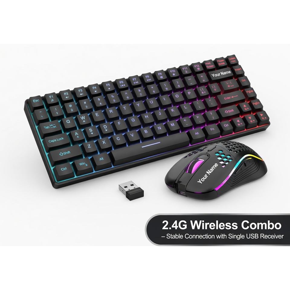 Combo de Teclado y Ratón Inalámbrico para Juegos K84, OEM, Venta al por Mayor, Recargable, Retroiluminación de Arcoíris, Teclado TKL al 75%, Ratón de 3200 DPI