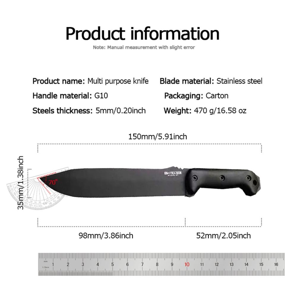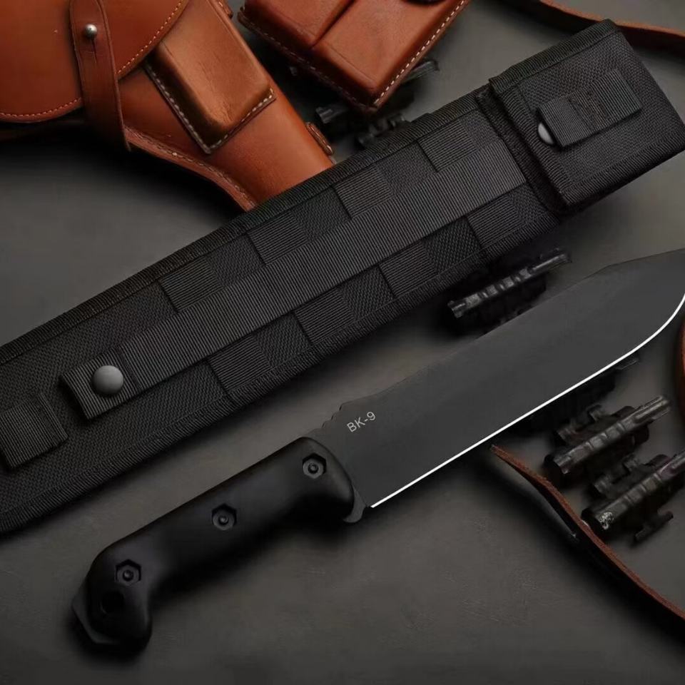 Cuchillo Táctico de Supervivencia para Exteriores KA-B BK9 de Acero Inoxidable de Alta Calidad con Mango G10 y Funda, Hoja Fija, para Bricolaje Industrial
