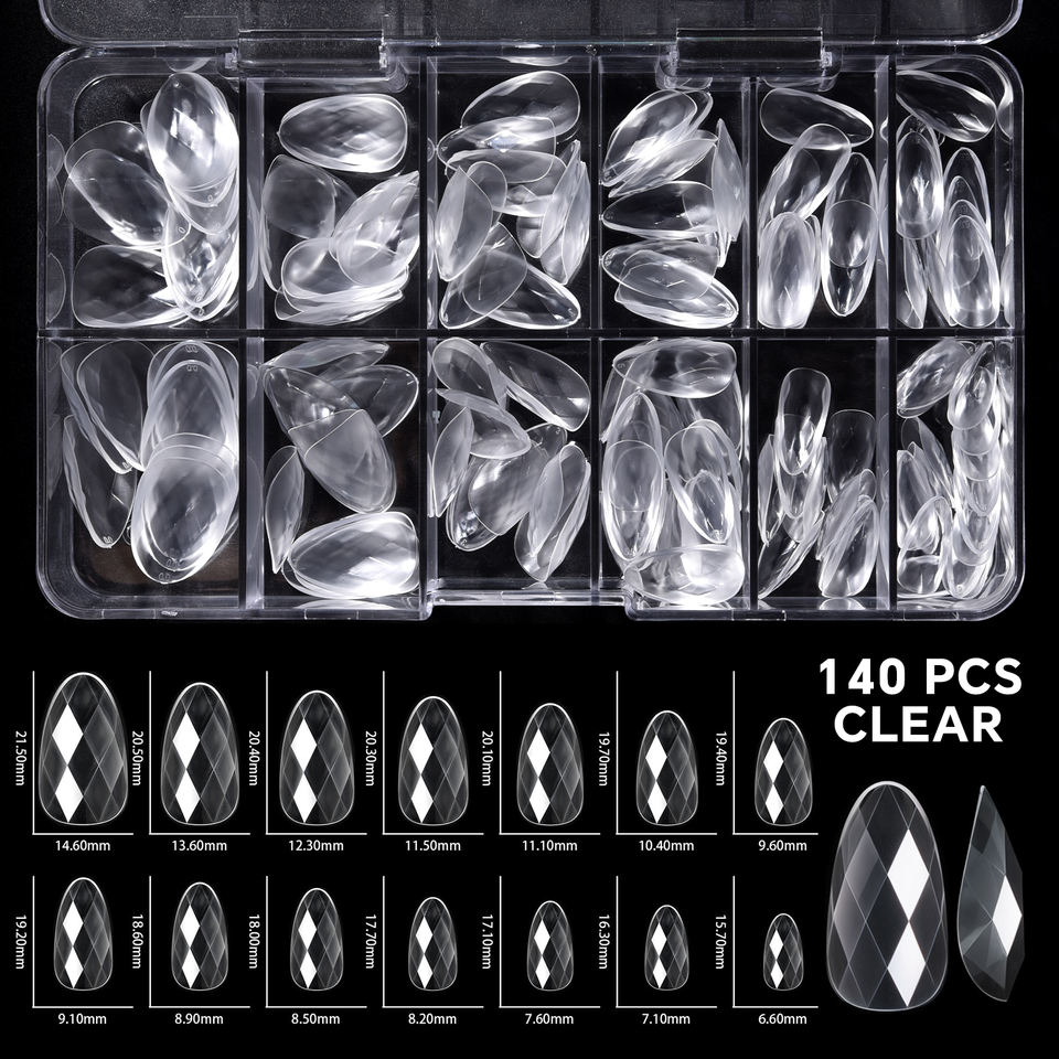 KADS 120 Uñas Postizas Acrílicas 3D con Forma de Diamante, Transparentes, Sin Costuras, para Extensión de Manicura