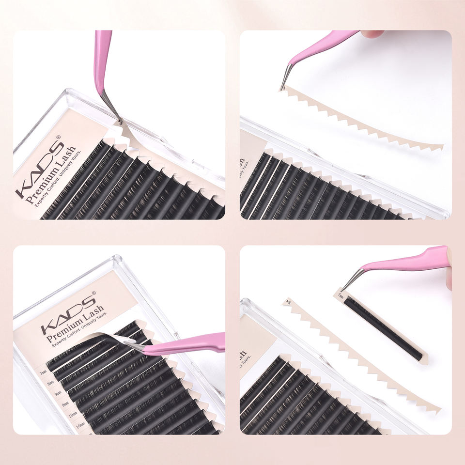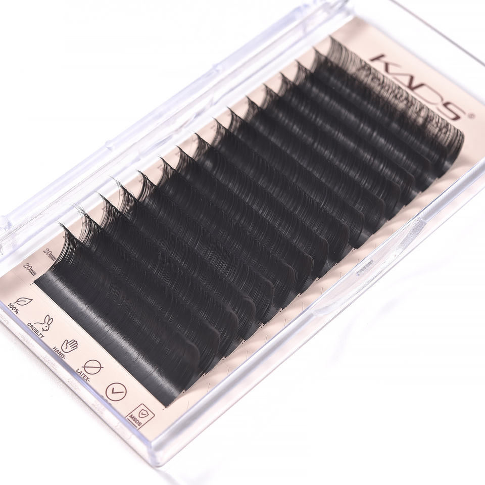 Extensiones de Pestañas Individuales Clásicas KADS de 16 Filas, Color Negro Mate, Cachemira, Pestañas Naturales para Creación de Volumen, Marca Privada para Salón