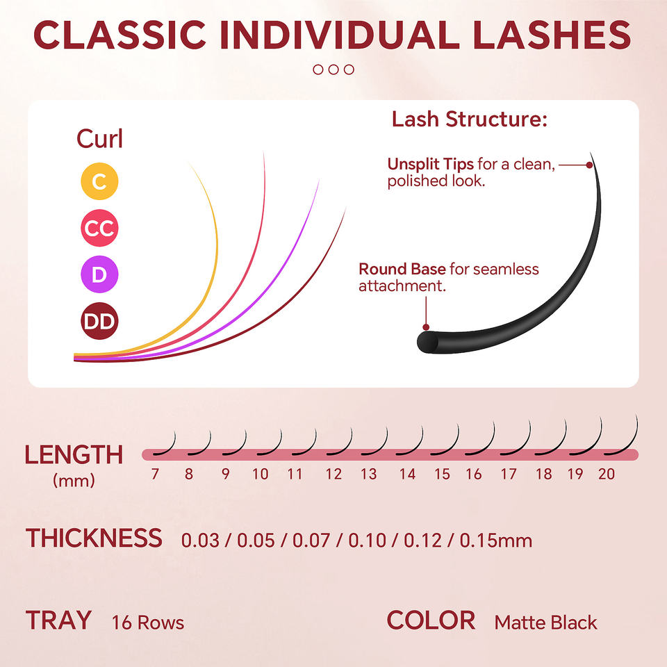 Nombre del producto:Extensiones de pestañas individuales clásicas de 16 filas en negro mate