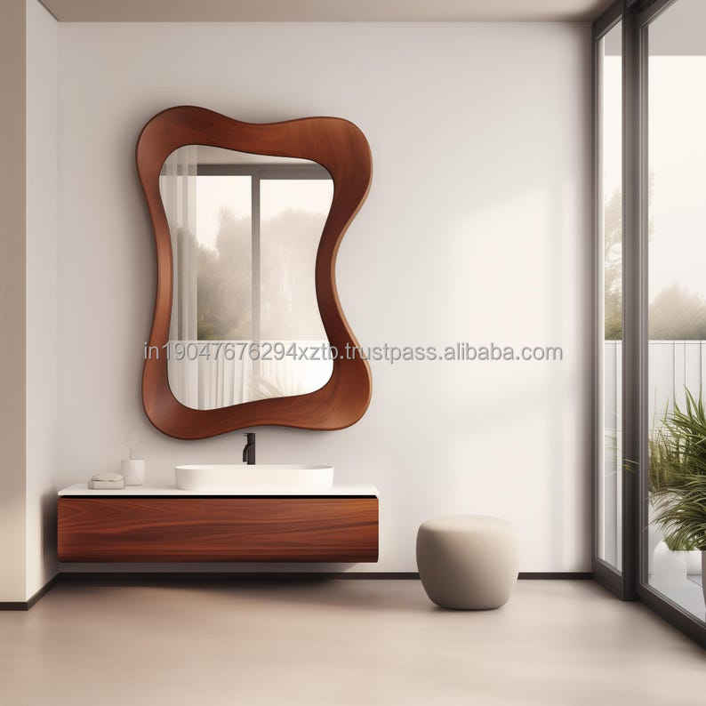 Espejo de Pared de Madera de Nogal Asimétrico KALATRI, Diseño Art Deco Irregular Hecho a Mano, Ecológico, Ligero, para Uso Doméstico