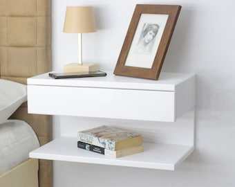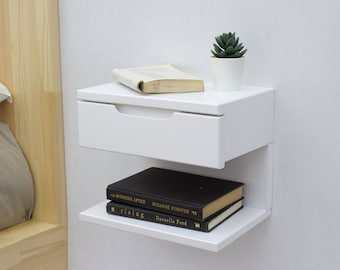 KALATRI-Mesita de noche flotante montada en la pared hecha a mano de madera moderna, almacenamiento de muebles de dormitorio, diseño ecológico para el hogar y la Oficina