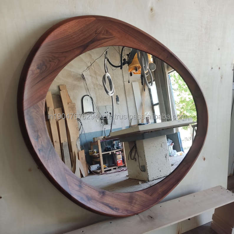 KALATRI Espejo Art Deco Asimétrico de Nogal Hecho a Mano Ecológico Ligero Compacto Marco de Madera 4mm de Espesor Uso Doméstico
