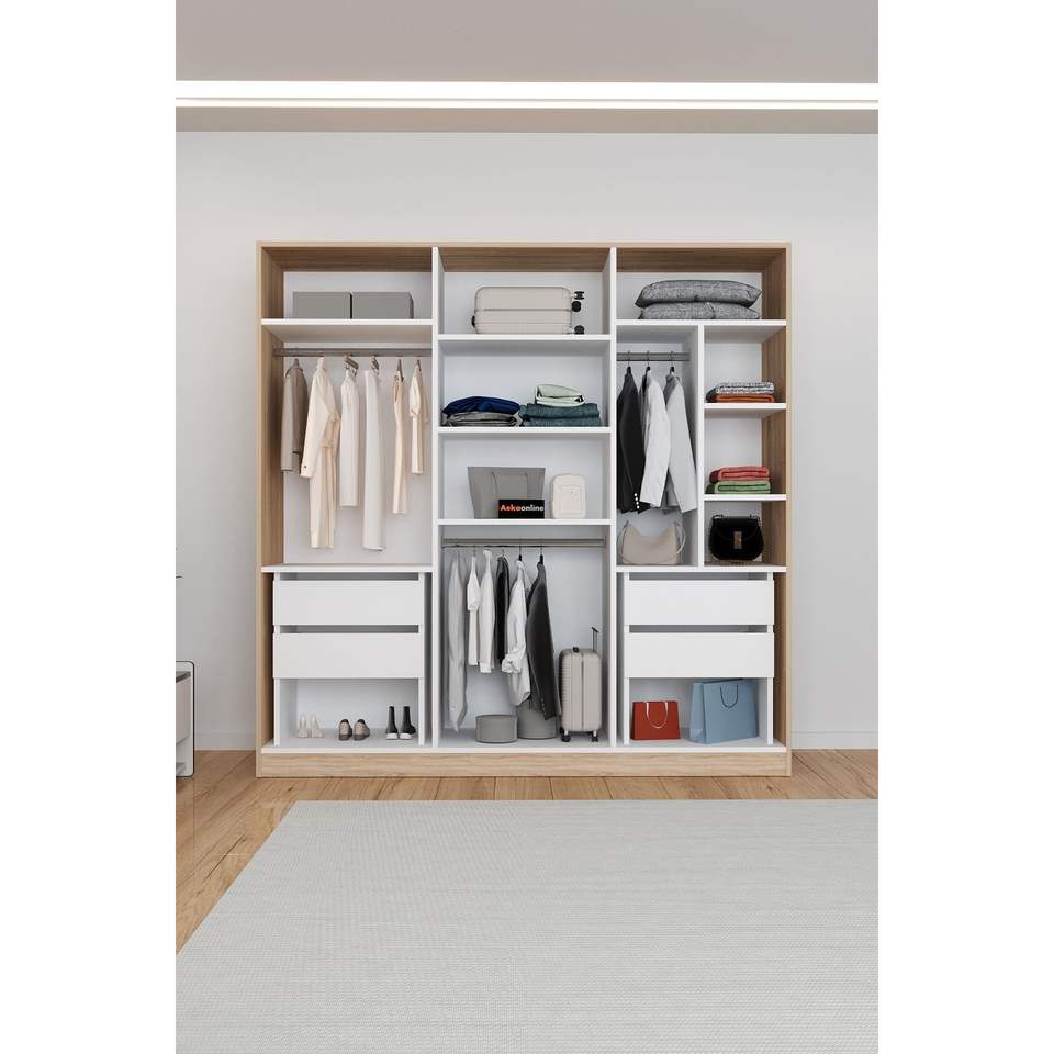 Armario Moderno Convertible KALE de 6 Puertas, Gabinete con Espejo Sonomo, 4 Cajones, 13 Estantes, Almacenamiento Plegable para Ropa, para Taller