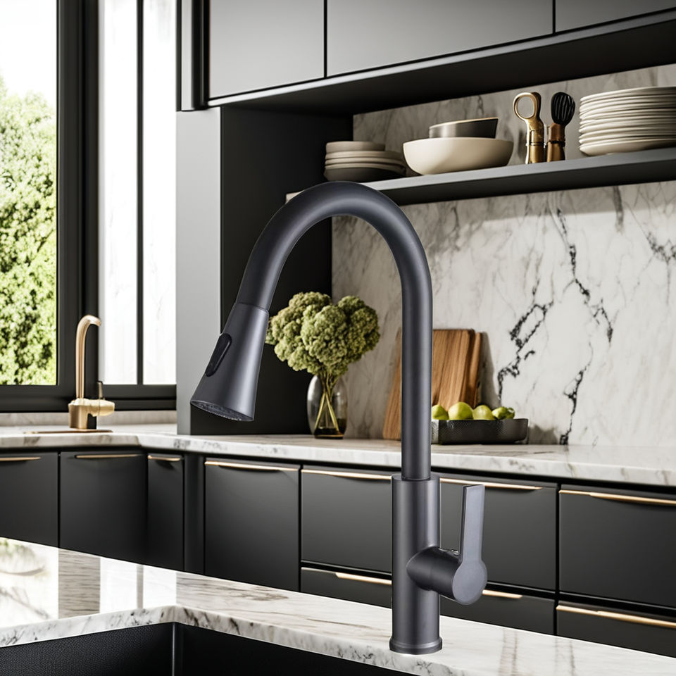 KAWAL-Grifo de cocina extraíble con un solo mango moderno, filtro con función de agua fría y caliente, acabado cepillado, instalación de fregadero de acero y plástico