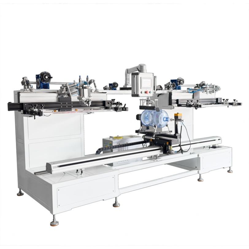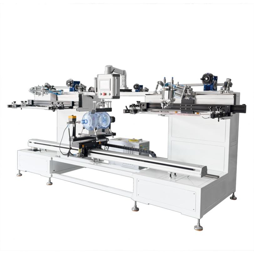 Impresora de Serigrafía Automática de Dos Colores con UVLED y 2 Estaciones, Controlada por PLC, para Botellas de Agua de un Galón, 400x600mm