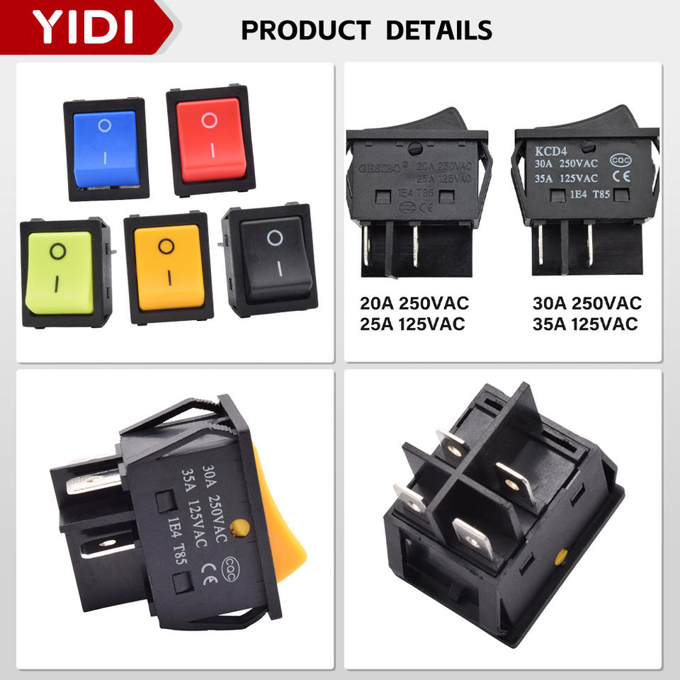 Interruptores Basculantes de Encendido/Apagado KCD4-201 de Plástico con 4 Pines, Negro, Azul, Verde, Rojo, Amarillo, DPST, Alta Corriente, Punto de Contacto Plateado Grande