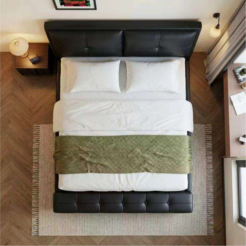 Cama con plataforma de cuero de microfibra KD Structure para apartamentos pequeños, con cajones de almacenamiento, diseño maestro, juego de muebles de dormitorio tamaño Queen