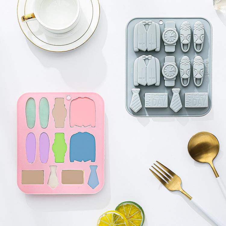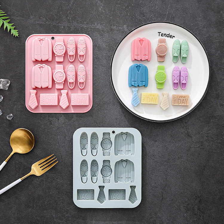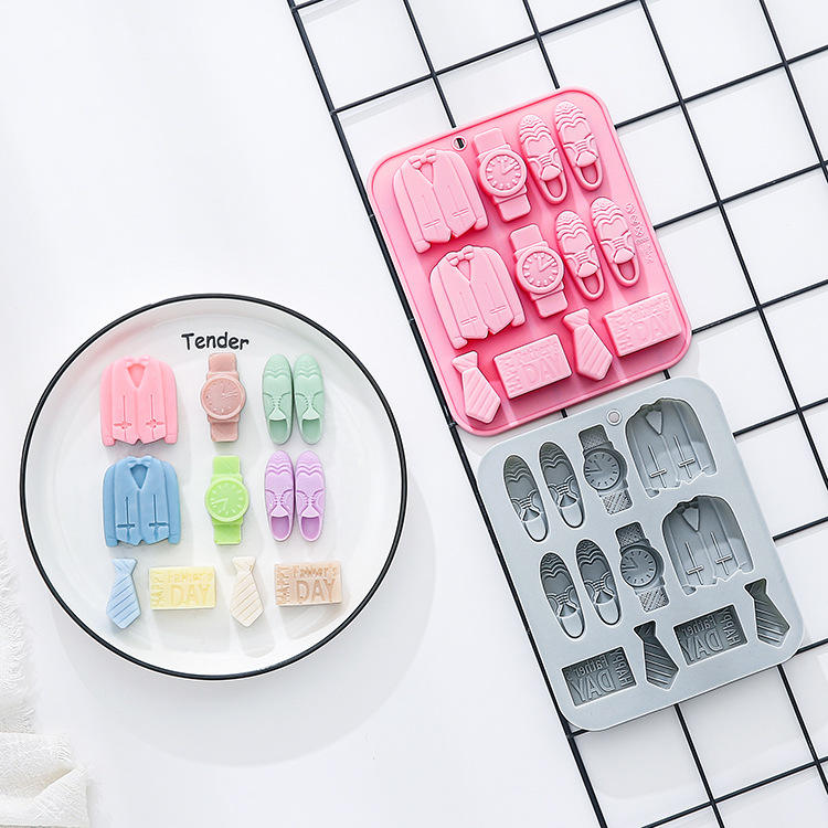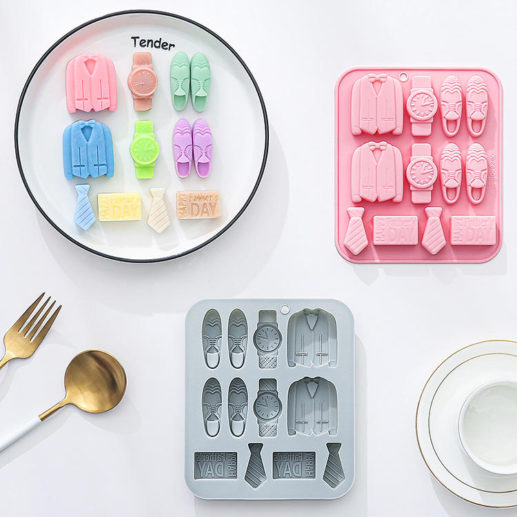 MOLDE PARA GOLOSINAS DE KEBAB, Paquete de 12, Molde de Silicona con Tema del Día del Padre, Reloj de Caballero, Chocolate, Resina, Repostería, Empaque a Granel, Irregular