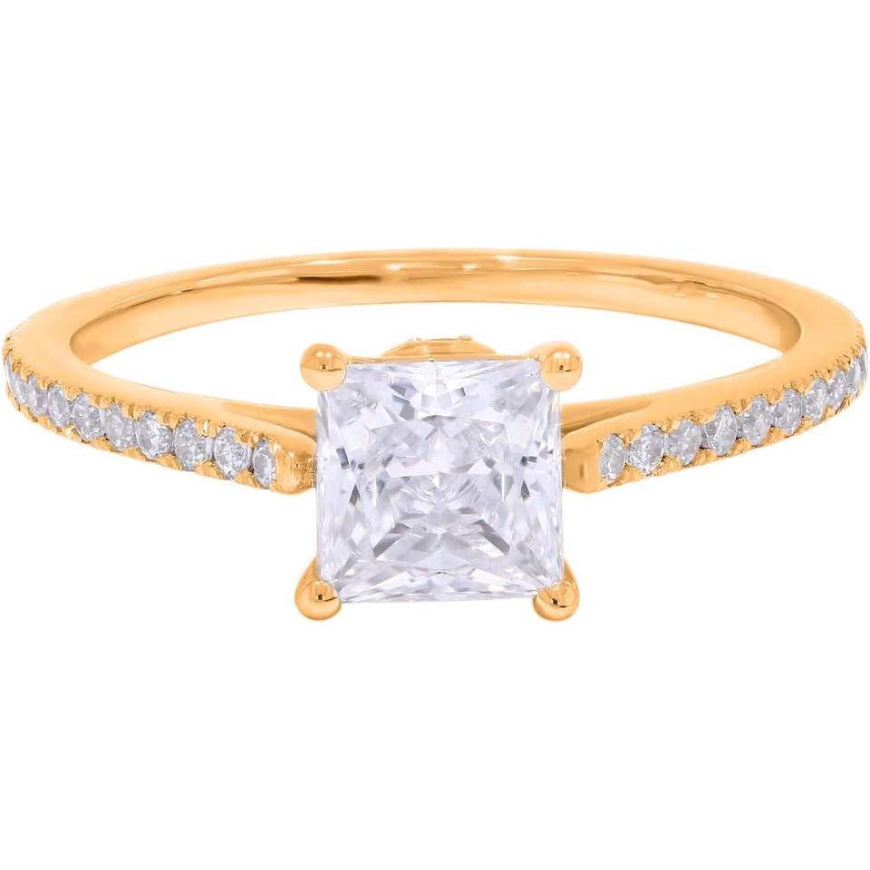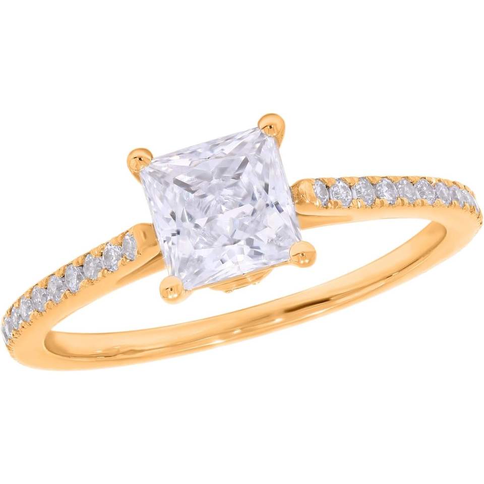 KEEVA JEWELS-Anillo de Compromiso Solitario de Diamante Cultivado en Laboratorio, Corte Princesa, 1.39Ct, Oro Sólido, 100%, Acentos de Corte VS,