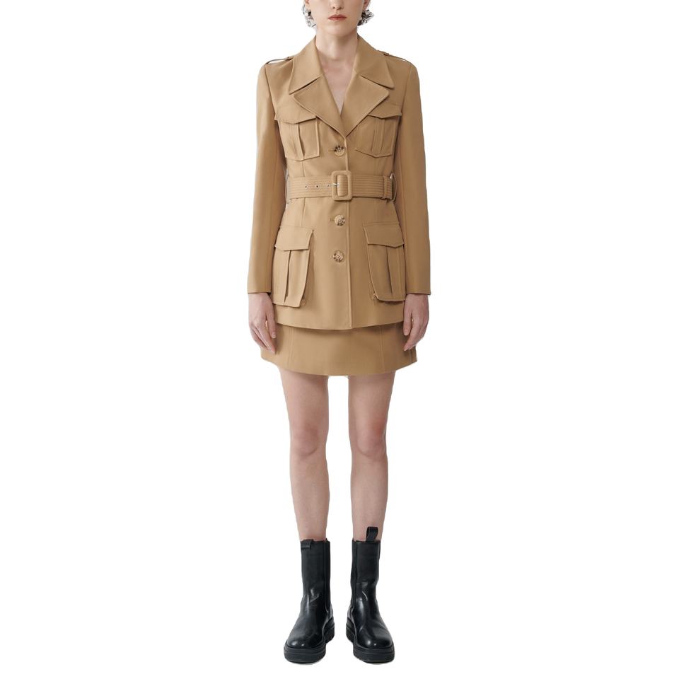 Más Detalles:Cuello sobredimensionado, pliegues de caja, cuatro bolsillos de parche botón con solapas.
