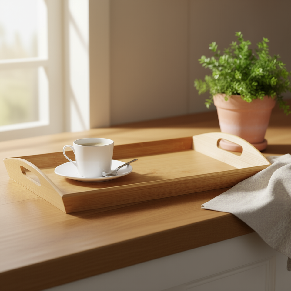 Bandeja de Servir KESPER de Bambú Rectangular con Asas para Servir Café y Té