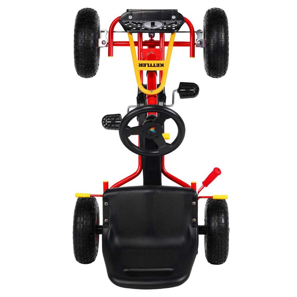 KETTLER Kettcar Retro Rojo para Niños de 3 a 6 Años Max 35kg Marco de Acero Robusto Asiento Ajustable Freno Embrague Gear Freewheel Kids Go Kart